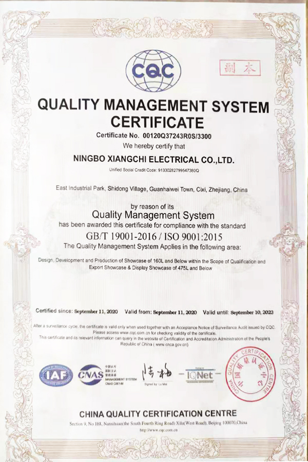 • 質量管理體系證書